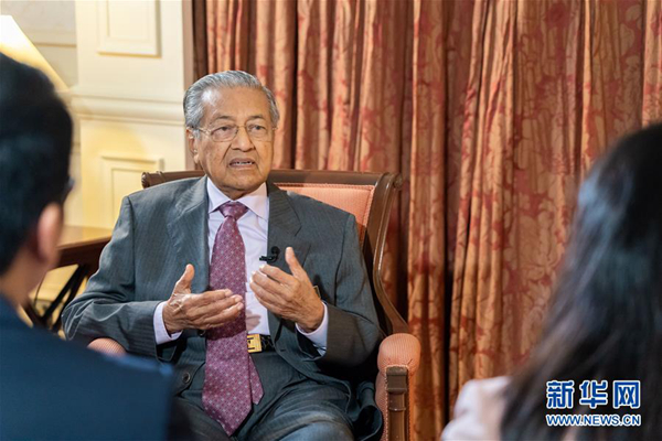 4月8日,馬來西亞總理馬哈蒂爾在普特拉賈亞接受中國媒體聯合采訪。新華社記者 朱煒 攝