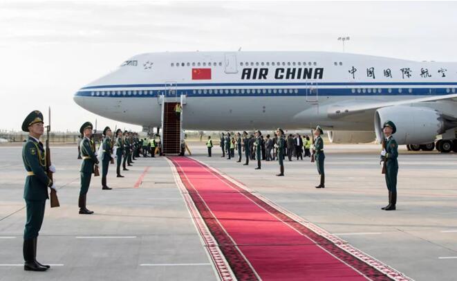 6月12日,國家主席習(xí)近平乘專機(jī)抵達(dá)比什凱克,開始對吉爾吉斯共和國進(jìn)行國事訪問并出席上海合作組織成員國元首理事會第十九次會議。吉爾吉斯斯坦總統(tǒng)熱恩別科夫在舷梯旁熱情迎接。新華社記者 謝環(huán)馳 攝