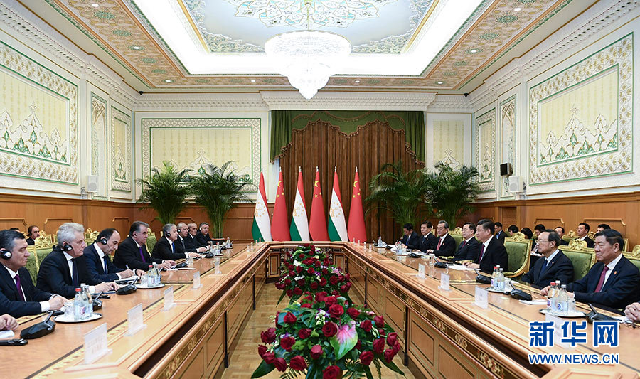 拉赫蒙表示,熱烈歡迎習(xí)近平主席再次訪問塔吉克斯坦,感謝中方為亞信第五次峰會(huì)成功舉辦作出重要貢獻(xiàn),祝賀中華人民共和國成立70周年,祝愿友好的中國永遠(yuǎn)國泰民安。塔方把深化同中國全面戰(zhàn)略伙伴關(guān)系作為外交優(yōu)先方向之一,感謝中方長期以來的支持和幫助,愿在“一帶一路”框架內(nèi)加強(qiáng)雙方能源、石化、水電、基礎(chǔ)設(shè)施建設(shè)等領(lǐng)域重點(diǎn)項(xiàng)目合作,助推塔吉克斯坦實(shí)現(xiàn)工業(yè)化目標(biāo)。雙方要密切青年、教育、文化等人文交流。塔方致力于同中方一道打擊“三股勢(shì)力”和跨國犯罪,加強(qiáng)執(zhí)法安全合作,密切在上海合作組織、亞信等多邊事務(wù)中協(xié)調(diào)。