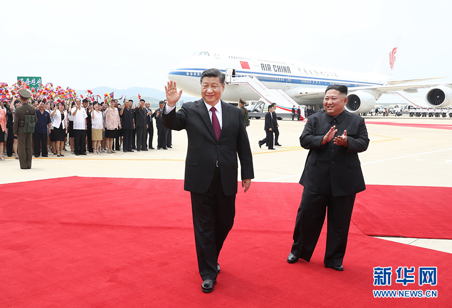 6月20日,中共中央總書記、國家主席習(xí)近平乘專機抵達(dá)平壤,開始對朝鮮民主主義人民共和國進(jìn)行國事訪問。朝鮮勞動黨委員長、國務(wù)委員會委員長金正恩和夫人李雪主到機場熱情迎接習(xí)近平和夫人彭麗媛。朝方在機場舉行隆重歡迎儀式。 新華社記者 劉衛(wèi)兵 攝