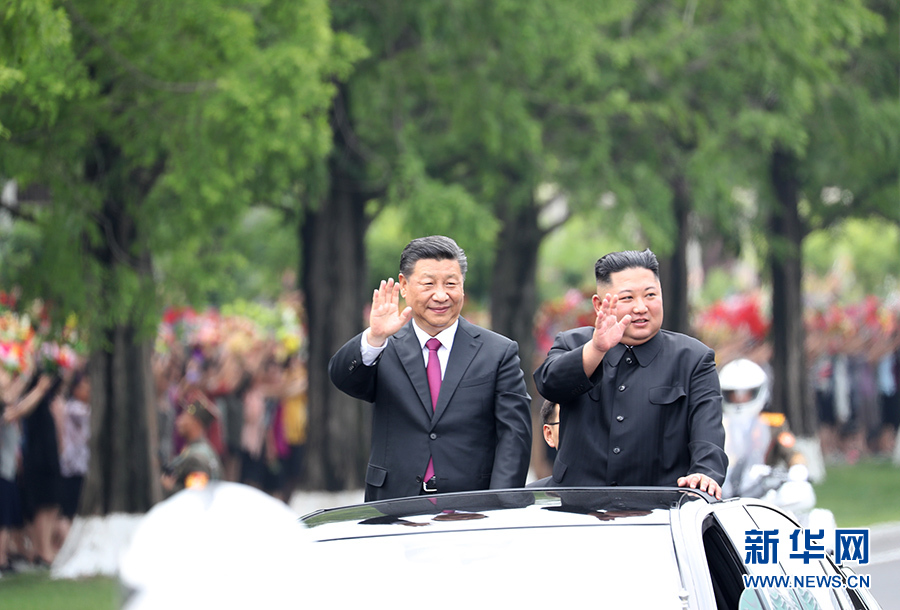 6月20日,中共中央總書記、國家主席習(xí)近平乘專機抵達(dá)平壤,開始對朝鮮民主主義人民共和國進(jìn)行國事訪問。朝鮮勞動黨委員長、國務(wù)委員會委員長金正恩和夫人李雪主到機場熱情迎接習(xí)近平和夫人彭麗媛。朝方在機場舉行隆重歡迎儀式。歡迎儀式結(jié)束后,習(xí)近平與金正恩同車前往錦繡山太陽宮廣場,沿途數(shù)十萬群眾夾道歡迎。 新華社記者 申宏 攝