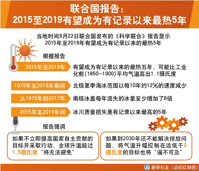新華社聯合國9月22日電(記者王建剛)聯合國22日發布的一份報告顯示,2015年至2019年有望成為有記錄以來的最熱5年。