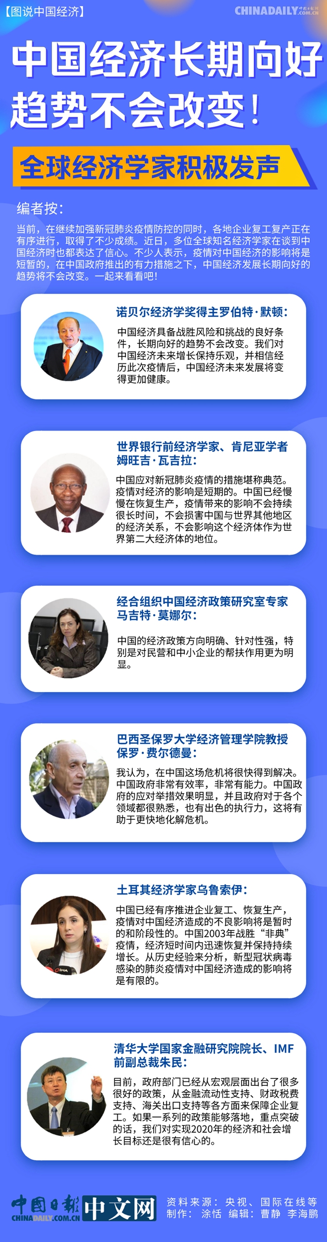 當前,在繼續加強新冠肺炎疫情防控的同時,各地企業復工復產正在有序進行,取得了不少成績?。近日,多位全球知名經濟學家在談到中國經濟時也都表達了信心。不少人表示,疫情對中國經濟的影響將是短暫的,在中國政府推出的有力措施之下,中國經濟發展長期向好的趨勢將不會改變。一起來看看吧!