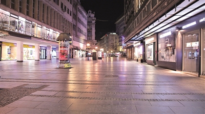 這是3月18日在塞爾維亞貝爾格萊德拍攝的街道,當晚是塞爾維亞為防止新冠肺炎疫情蔓延而實行宵禁的第一天。新華社發