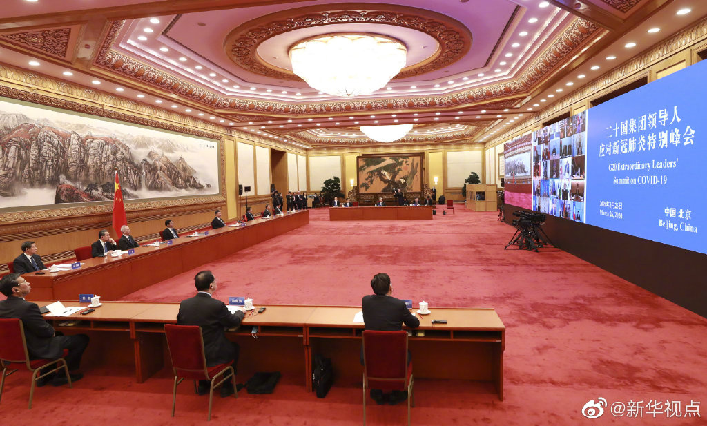國家主席習近平26日晚在北京出席二十國集團領導人應對新冠肺炎特別峰會。習近平強調,國際社會應該加緊行動起來,堅決打好新冠肺炎疫情防控全球阻擊戰,遏制疫情蔓延勢頭。中方秉持人類命運共同體理念,愿同有關國家分享防控有益做法,開展藥物和疫苗聯合研發,并向出現疫情擴散的國家提供力所能及的援助。?