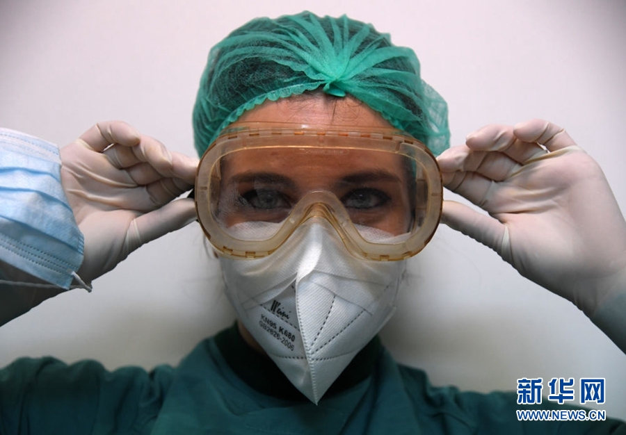 4月12日,在意大利首都羅馬,圣斯皮里托醫(yī)院的護士在進入新冠肺炎病區(qū)前穿戴防護設備。新華社發(fā)(阿爾貝托·林格利亞攝)