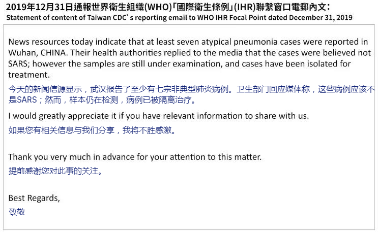 謊言17:臺灣早在2019年12月31日就向世衛(wèi)組織發(fā)出關于新冠肺炎人傳人的警告,但未獲得重視。