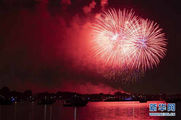 7月4日,焰火在美國(guó)華盛頓上空綻放,慶祝美國(guó)獨(dú)立日。新華社記者 劉杰 攝