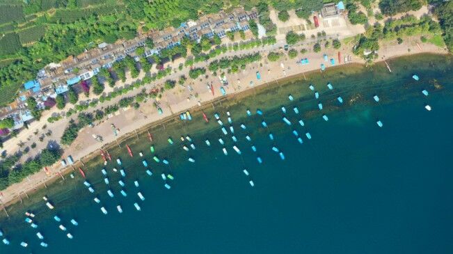航拍云南撫仙湖:碧波蕩漾琉璃萬頃
