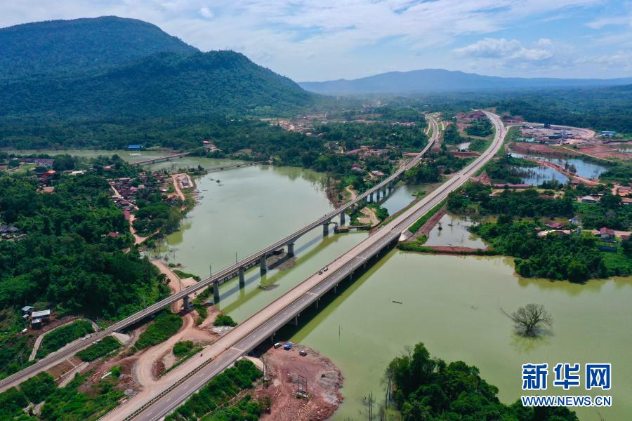 這是6月2日在老撾萬象省航拍的建設中的萬萬高速公路。(無人機拍攝)新華社發(云南建投集團供圖)