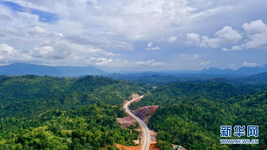 這是10月27日在老撾萬象省拍攝的建設中的萬萬高速公路。新華社發(凱喬攝)