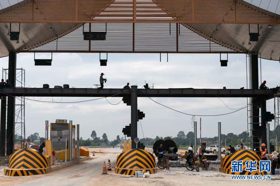 這是10月27日在老撾首都萬象拍攝的建設中的萬萬高速公路萬象入口。新華社發(凱喬攝)