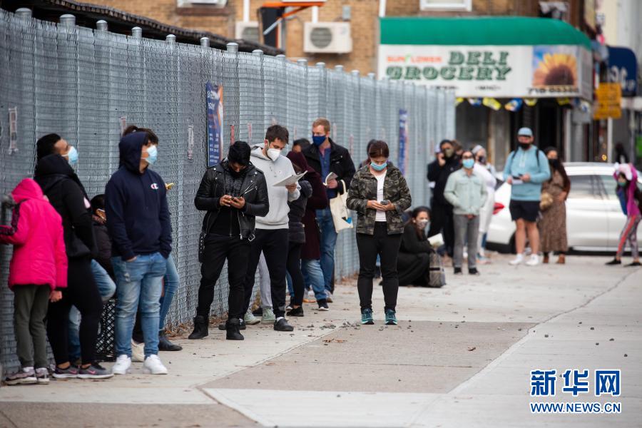 11月21日,人們在美國紐約排隊等待接受新冠病毒檢測。美國約翰斯·霍普金斯大學21日發布的新冠疫情最新統計數據顯示,美國累計確診病例超過1200萬例。新華社發(郭克攝)
