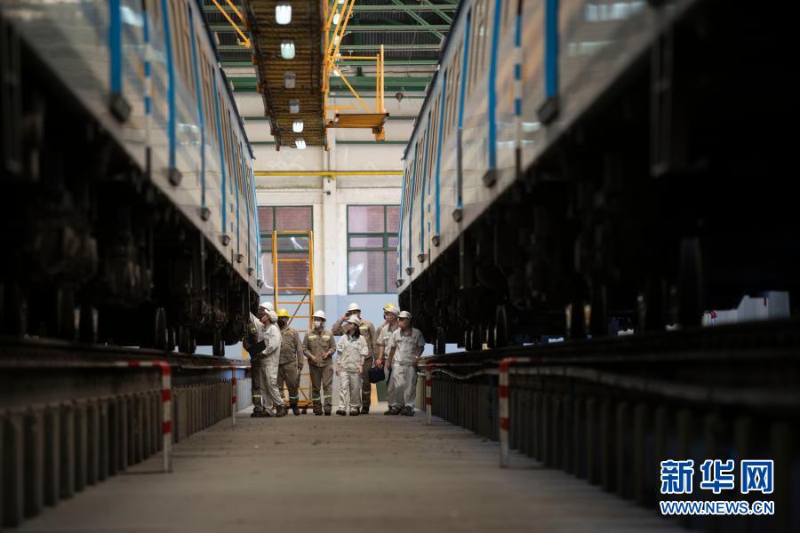 11月16日,在布宜諾斯艾利斯省拉瓦約,中國(guó)和阿根廷技術(shù)人員對(duì)列車(chē)進(jìn)行日常檢查。 新華社發(fā)(馬丁·薩巴拉攝)