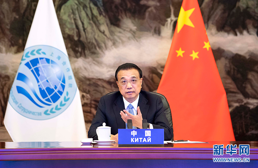 11月30日下午,國務院總理李克強在北京人民大會堂出席上海合作組織成員國政府首腦(總理)理事會第十九次會議。俄羅斯總理米舒斯京、哈薩克斯坦總理馬明、塔吉克斯坦總理拉蘇爾佐達、烏茲別克斯坦總理阿里波夫、吉爾吉斯斯坦代總理諾維科夫、印度副總統奈杜、巴基斯坦政府代表以及觀察員國代表等與會。會議以視頻方式舉行。 新華社記者 李濤 攝