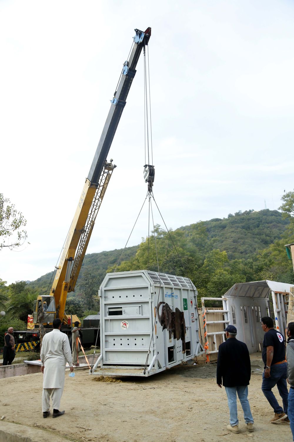 ↑11月29日,在巴基斯坦伊斯蘭堡,工作人員為運輸大象做準備