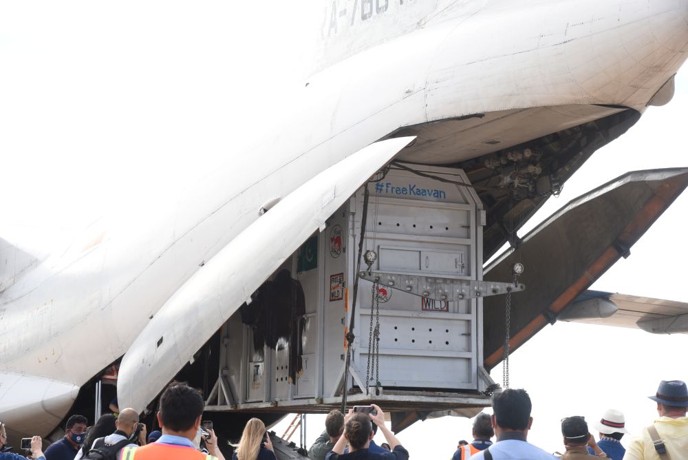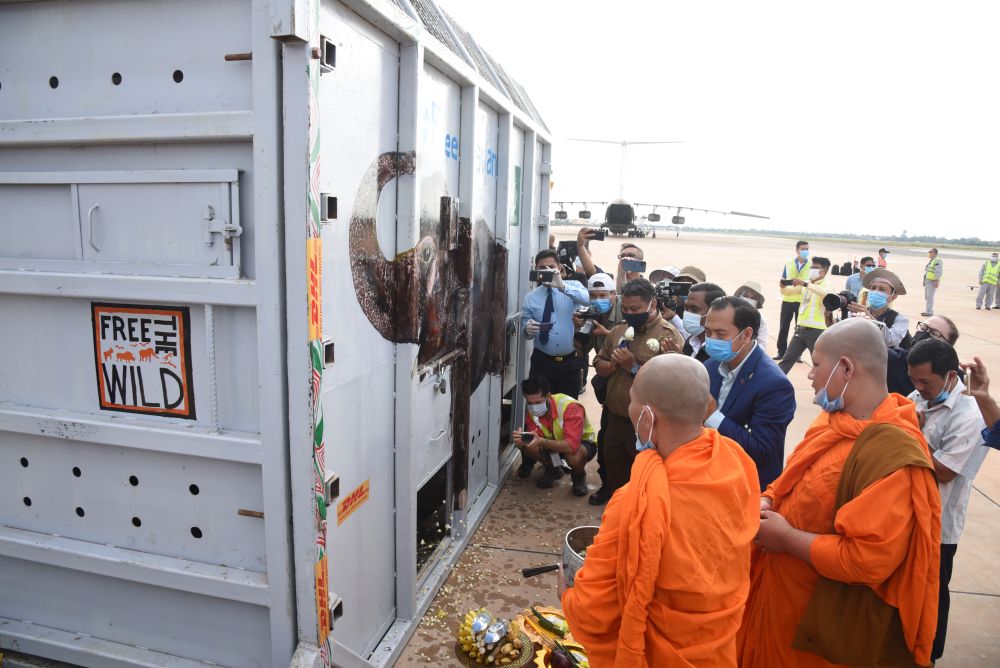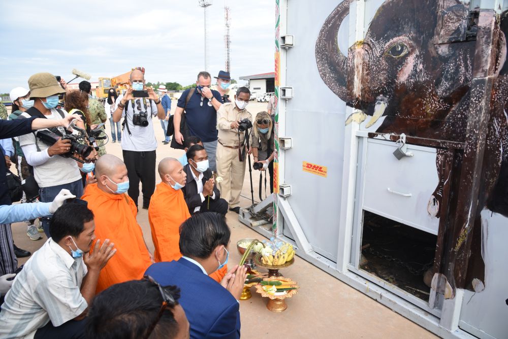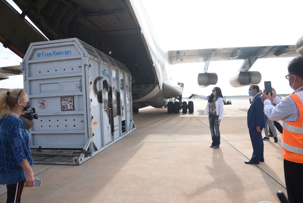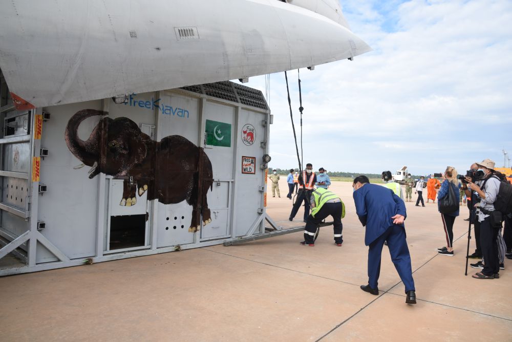 經歷7小時飛行后,“卡萬”抵達柬埔寨東北部城市暹粒。然后它將經歷數小時卡車運輸抵達保護區——那里有80多頭象。