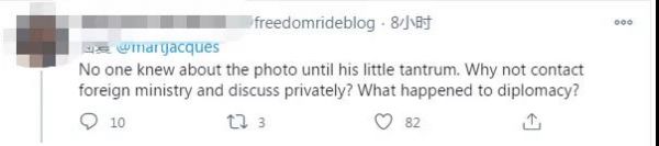 “在他發脾氣之前沒人知道這張‘照片’。為什么不聯系外交部私下討論?外交怎么了?”