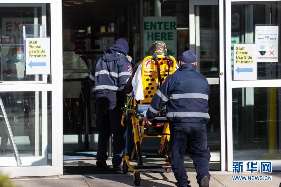 12月3日,在美國紐約,工作人員運送一名患者。