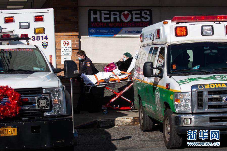 12月3日,在美國紐約,工作人員運(yùn)送一名患者。