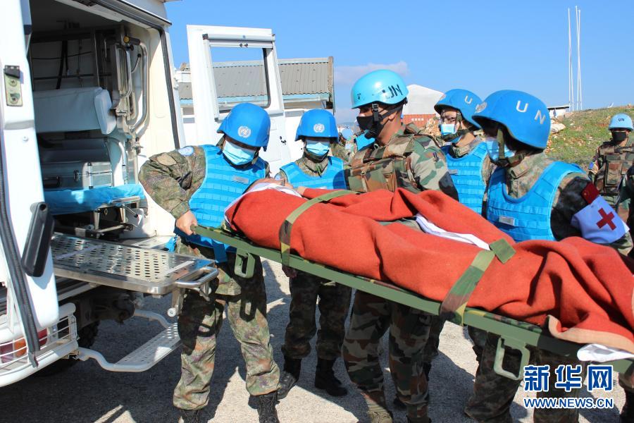 12月29日,中國第19批赴黎巴嫩維和部隊醫療分隊隊員參加代號為“東區天使2020-Ⅲ”的協同應急醫療救援演練。新華社發(雷洋攝)