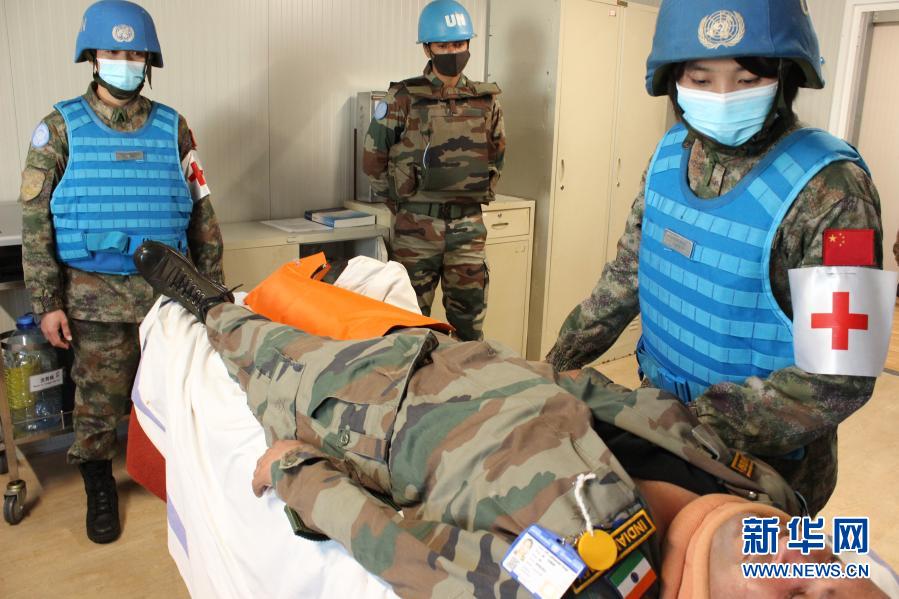 12月29日,中國第19批赴黎巴嫩維和部隊醫療分隊隊員參加代號為“東區天使2020-Ⅲ”的協同應急醫療救援演練時對“傷員”進行急診診斷。新華社發(雷洋攝)