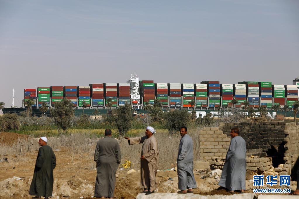 這是3月29日拍攝的移動(dòng)至埃及蘇伊士運(yùn)河正常航道上的重型貨輪。新華社發(fā)(艾哈邁德·戈馬 攝)