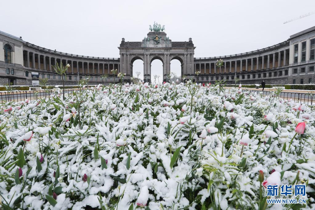 比利時近日迎來春雪,首都布魯塞爾銀裝素裹,景色別致。