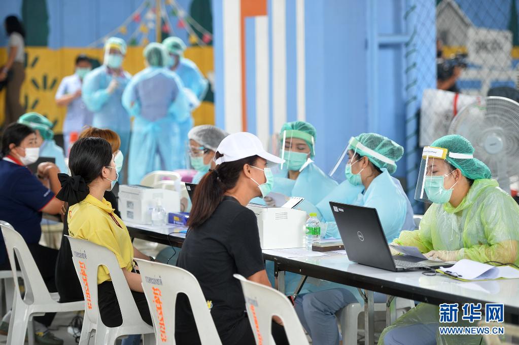 4月7日,居民在泰國曼谷準備接種中國科興新冠疫苗。