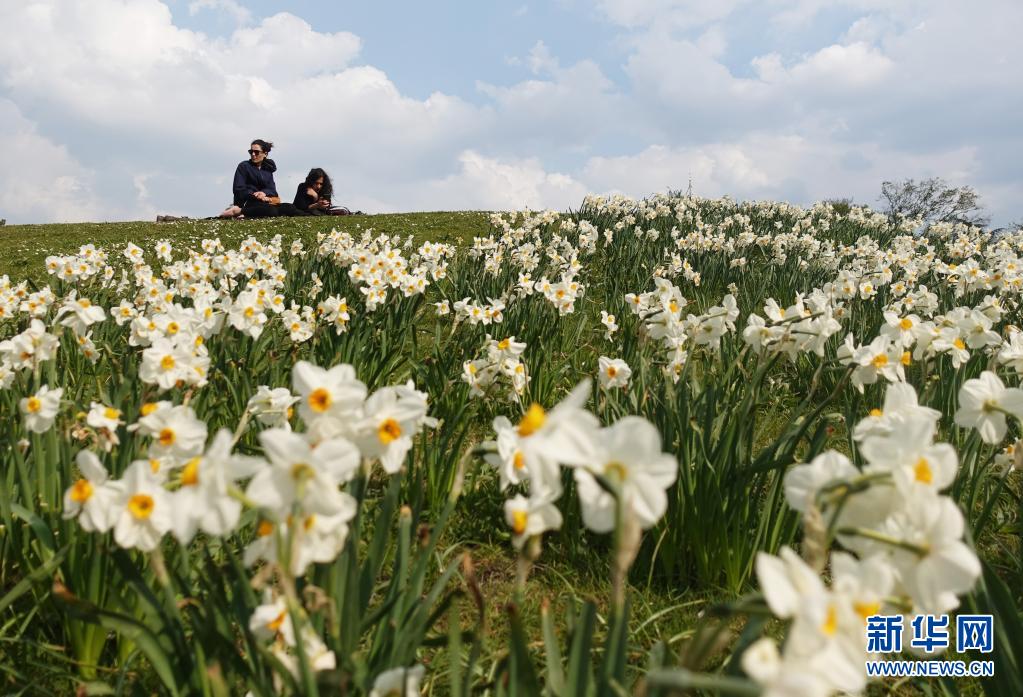 近日,法國巴黎氣溫回升,春花開放,人們紛紛走出家門享受大好春光。