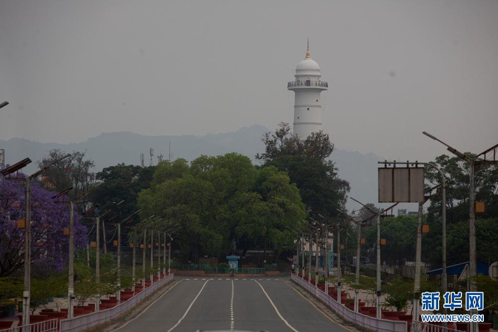 這是5月1日拍攝的尼泊爾加德滿都空曠的街道。