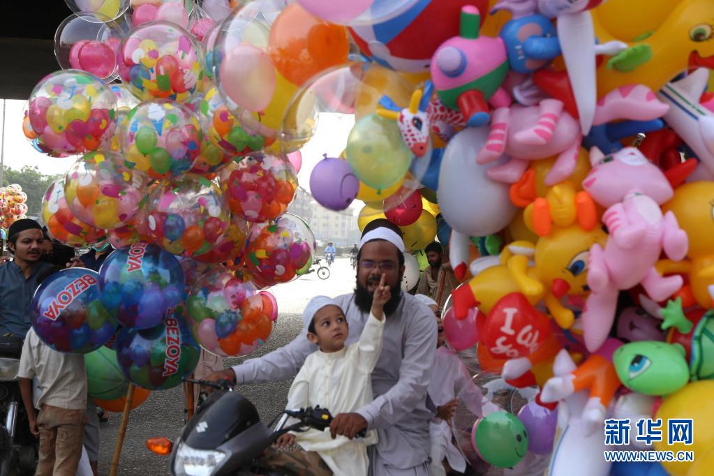 5月13日,人們在巴基斯坦南部城市卡拉奇慶祝開齋節。新華社發