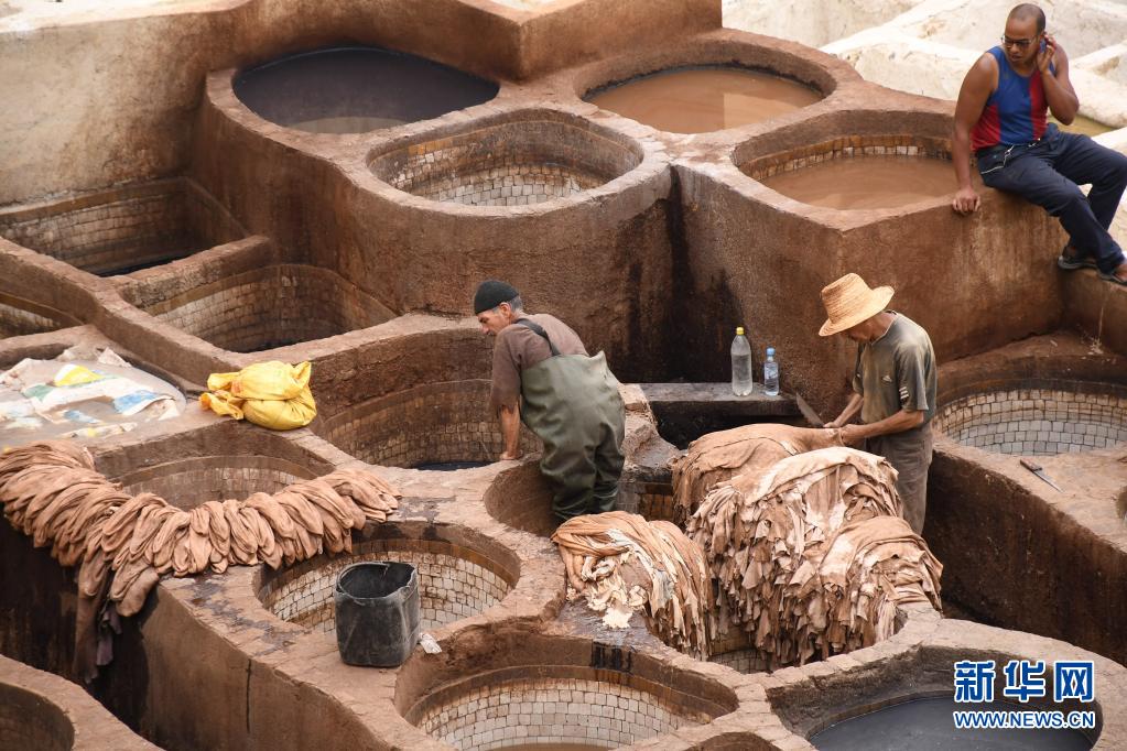 皮革業(yè)是摩洛哥的重要產(chǎn)業(yè)之一,非斯古城中的一些皮革染坊至今仍延用傳統(tǒng)工藝為皮革染色。