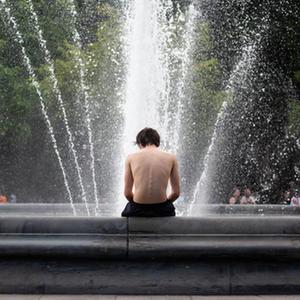 紐約近日持續高溫,當天氣溫超過34攝氏度。