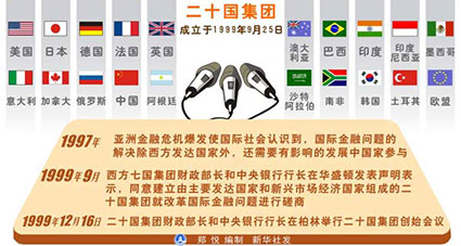 2008年11月,在國際金融危機沖擊的背景下,二十國集團首次峰會在美國首都華盛頓舉行。會議就金融危機的起源、加強合作反對貿易保護主義、支持經濟增長等問題達成共識,并就應對世界面臨的金融和經濟問題的措施達成一項行動計劃,其中包括提高金融市場透明度和完善問責制、加強管理、促進金融市場完整性、強化國際合作以及改革國際金融機構等。
